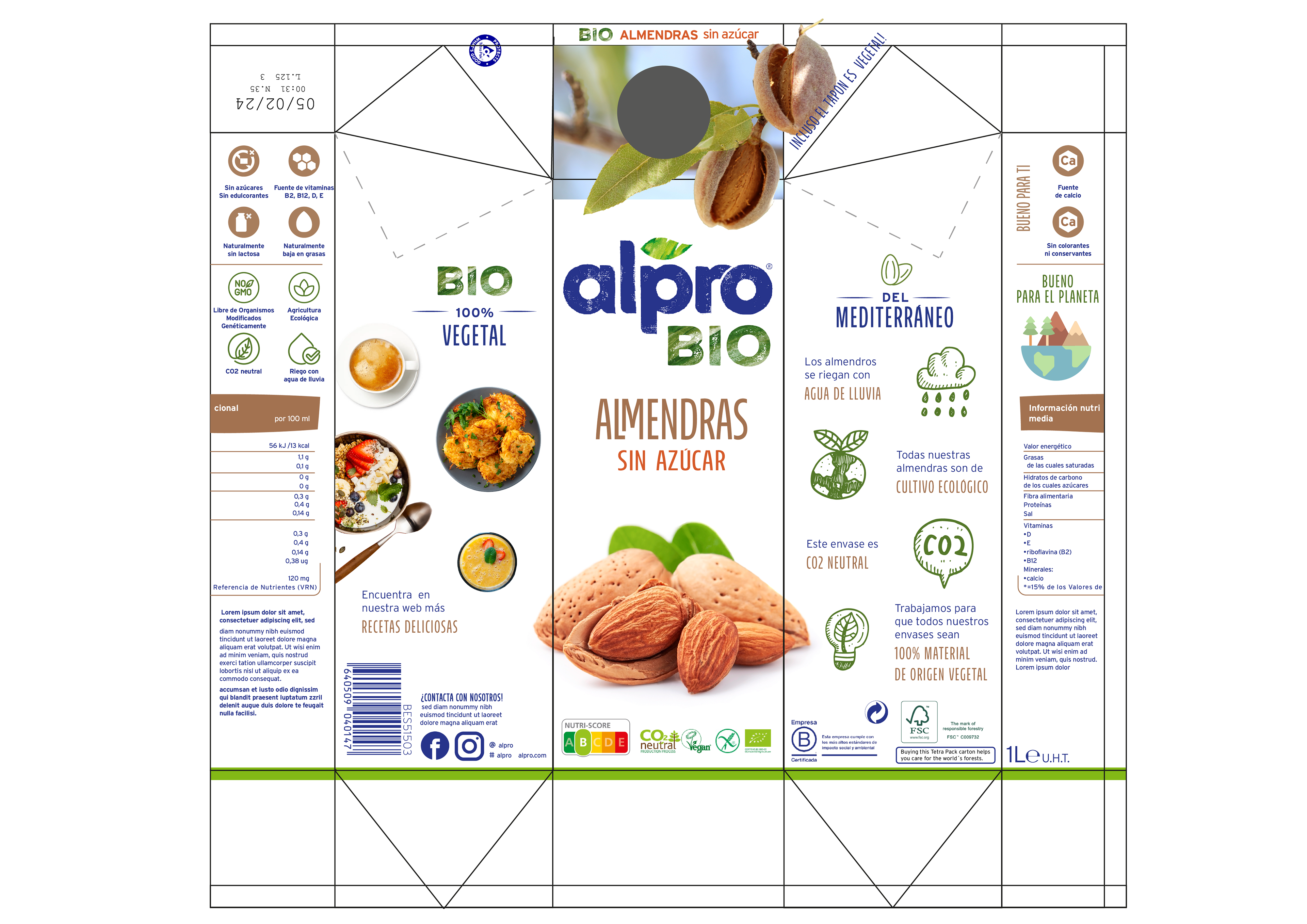 2023- Rediseño de packaging- rediseño de packaging para una nueva línea Bio de la marca Alpro.